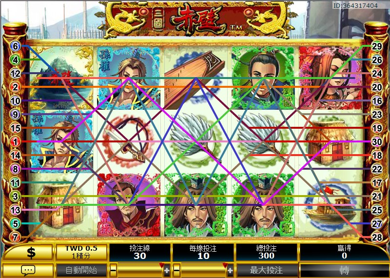- 在免費遊戲中,是不能觸發赤壁之戰紅利遊戲及草船借箭紅利遊戲。
