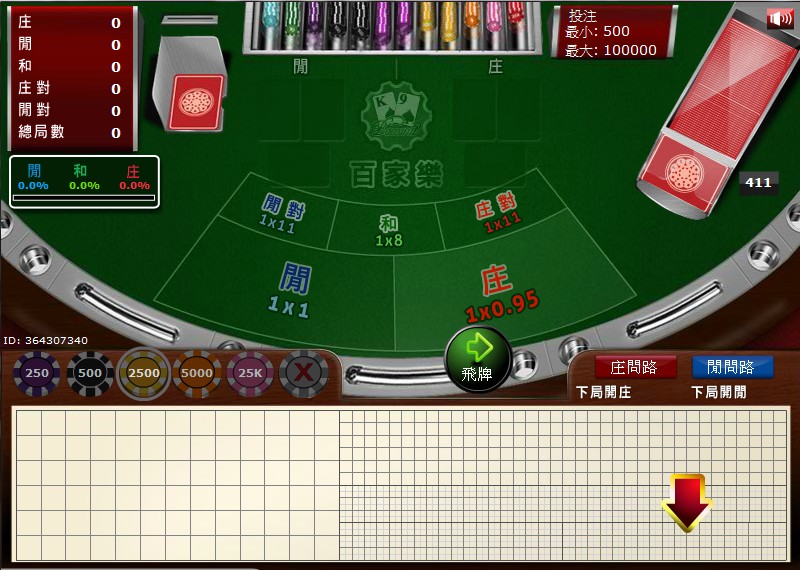 - 飛牌 : 跳過此回合不作下注。此按鈕只適用於新一靴牌的首三回合遊戲,若玩家於(第一及第二回合) 有下注的話,不能選用此按鈕。