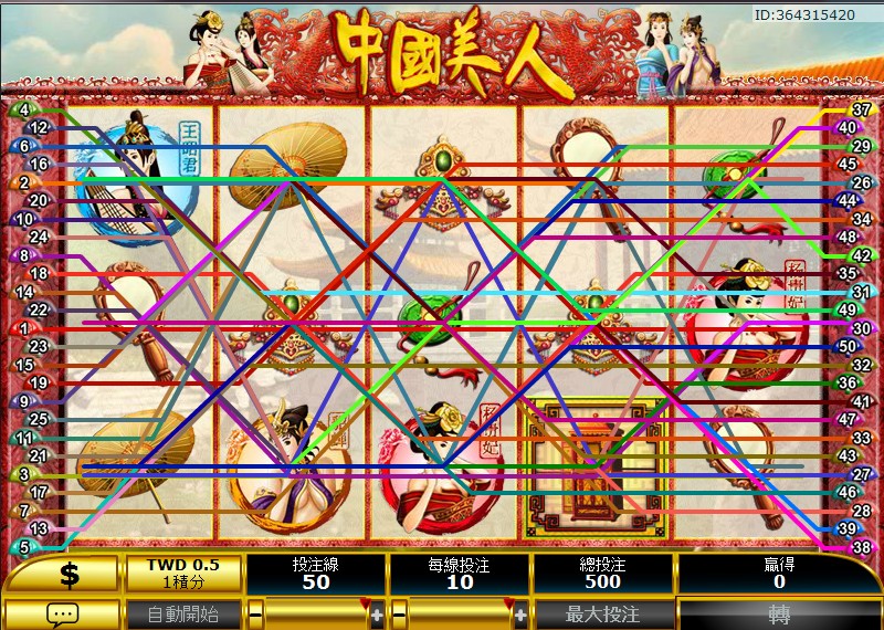 - 在免費遊戲中,是不能觸發得中國美人紅利遊戲。
