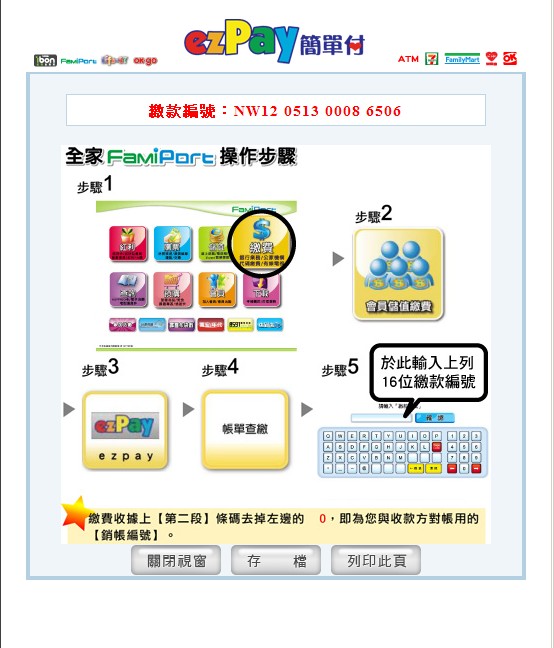 填寫完畢送出後 會出現16碼代碼 請記下代碼後至超商繳費即可