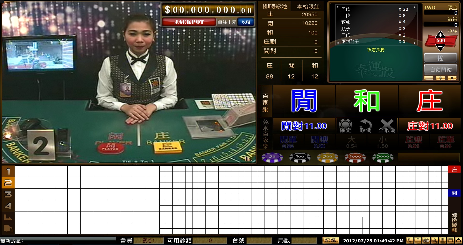 閒兩牌合計點數(閒家) 庄兩牌合計點數(庄家)
