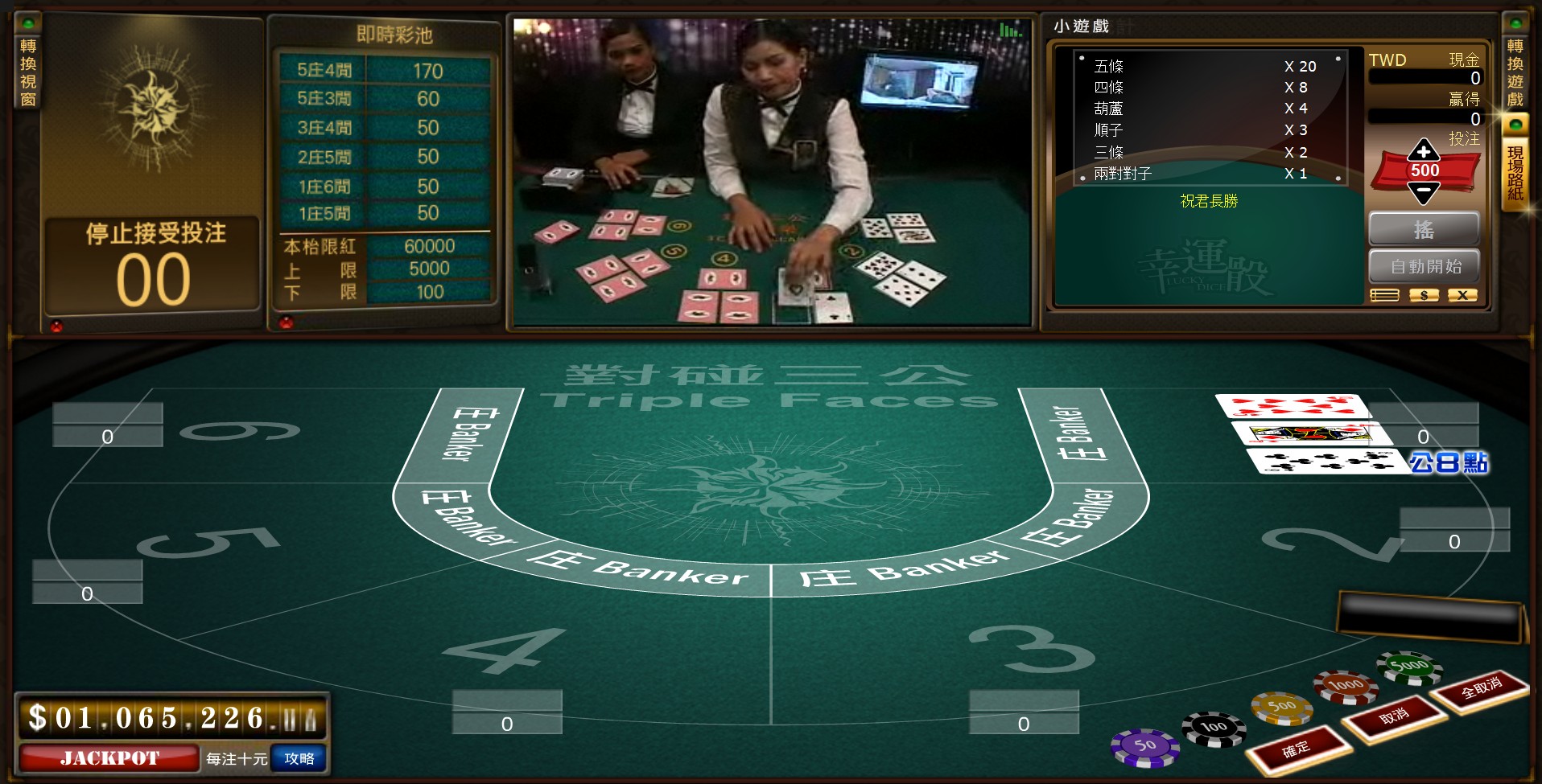 三公對對碰為創新的三公遊戲,目的是增加其公平性。玩法簡易,玩家先選擇一門為庄,然後再投注餘下的任何一門或多門與庄那門鬥大,荷官派六門牌,每門各派三隻牌。三公對對碰的牌例與普通三公的牌例相同。三公為最大,其後以三牌合計最近9點為勝,如點數相同,則以多公為勝方。