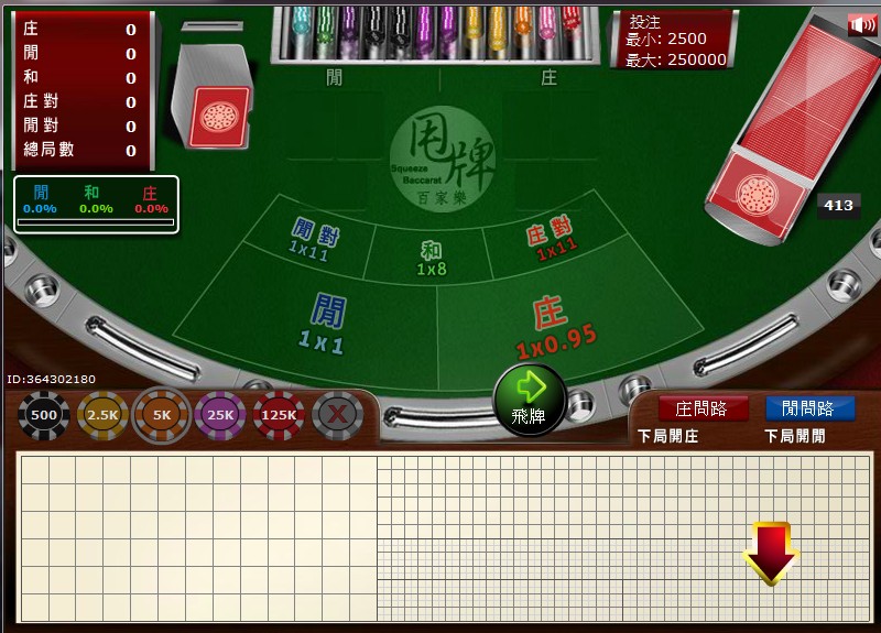 - 飛牌 : 跳過此回合不作下注。此按鈕只適用於新一靴牌的首三回合遊戲,若玩家於(第一及第二回合) 有下注的話,不能選用此按鈕。